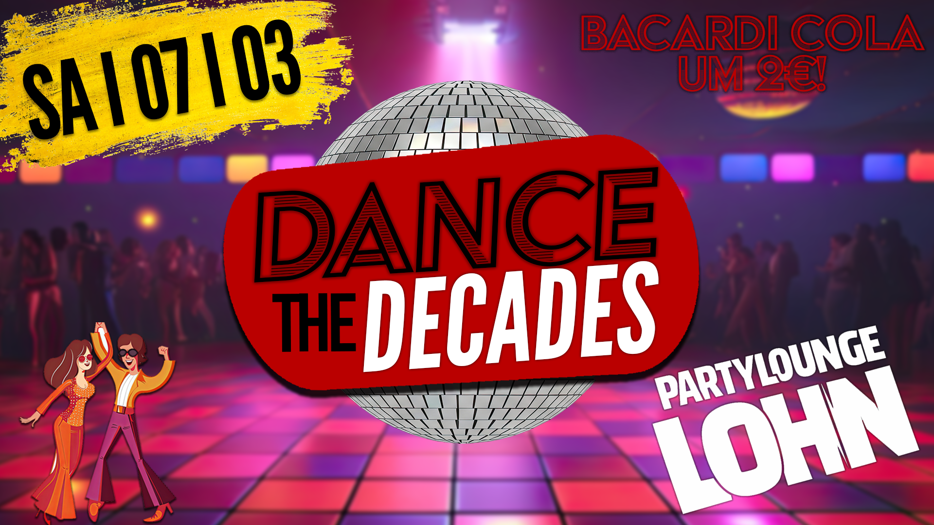 Dance the Decades in der Partylounge Lohn!💃 Bacardi Cola die ganze Nacht nur 2€!🥰🤑 Die ganze Nacht perfekte Oldies und Tanzmusik!🔊 Wir freuen uns auf EUCH!😘❤️